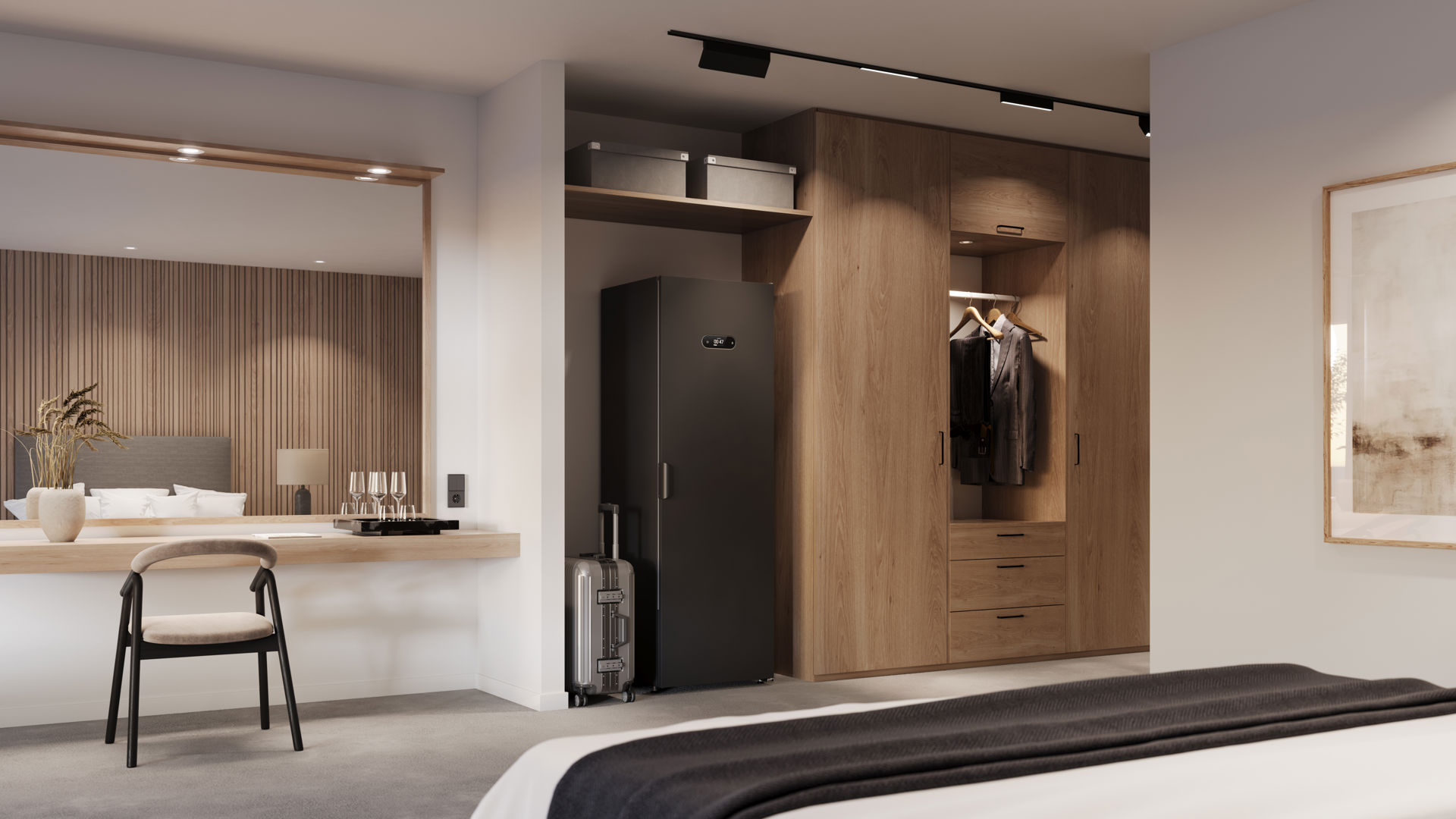 A cabinet with powerful steam that smooths out wrinkles and neutralises odours, allowing clothes to maintain a professional and presentable appearance with minimal effort.
