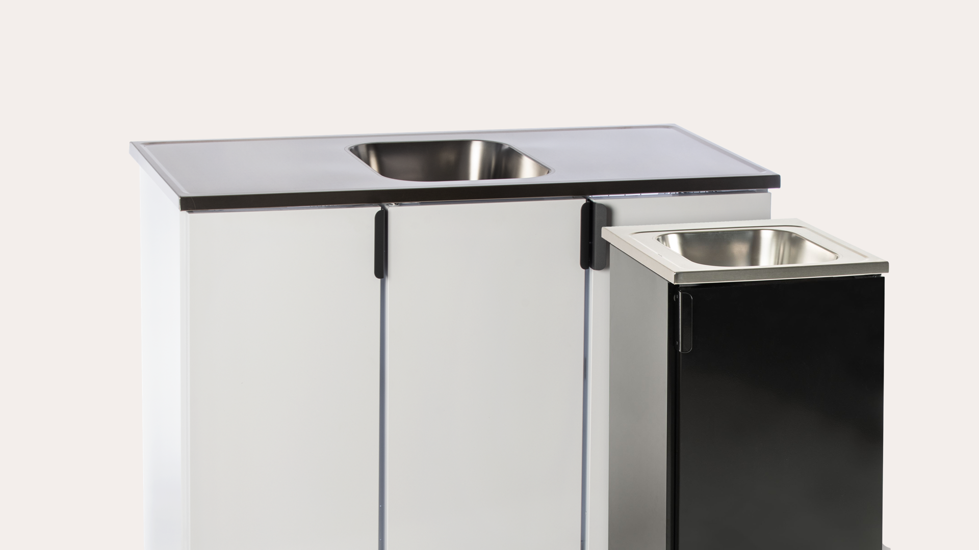 Whatever you choose, you'll always get a washbasin with height-adjustable legs, a rounded-bottom sink surrounded by stainless steel surfaces with a splashback.