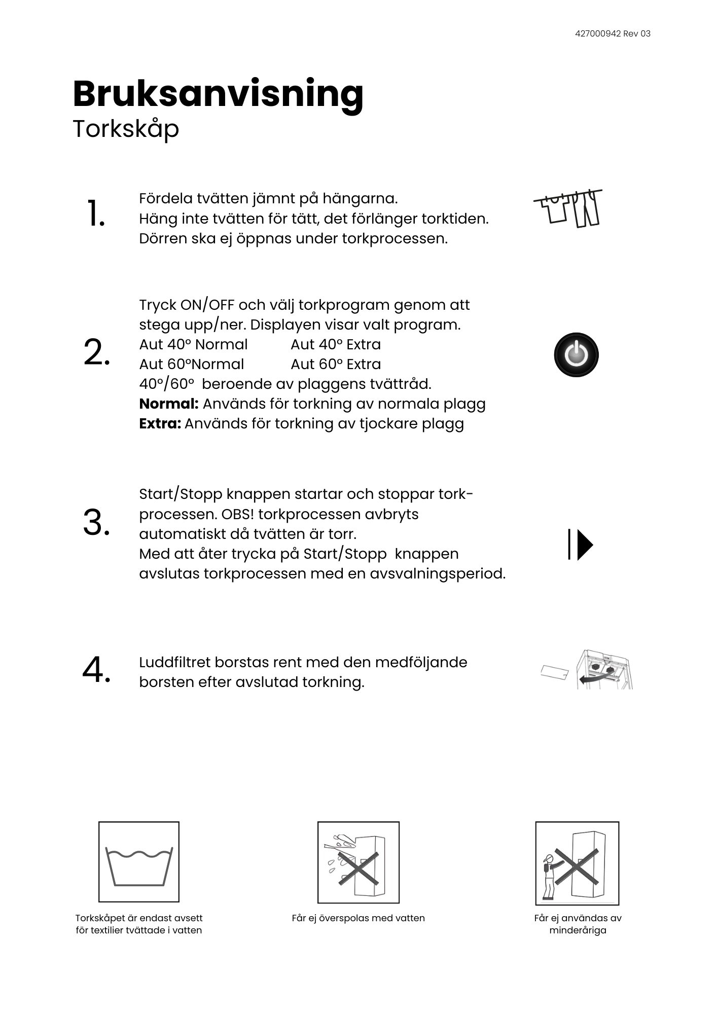 - Energiförbrukning/kg bomull, 50% restfuktighet (kW): 0.7
